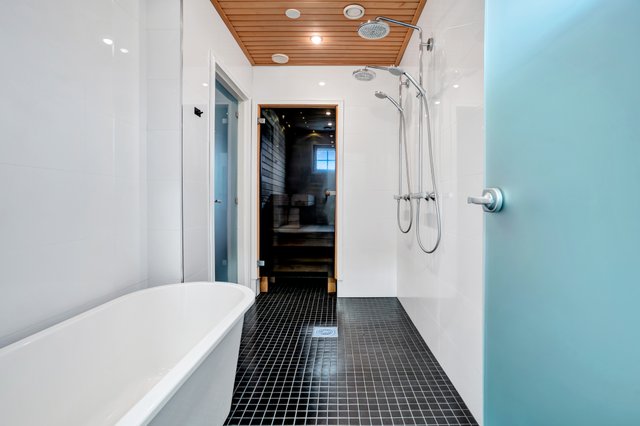 - Suihku (2 suihkua), lattialämmitys, ja kylpyamme