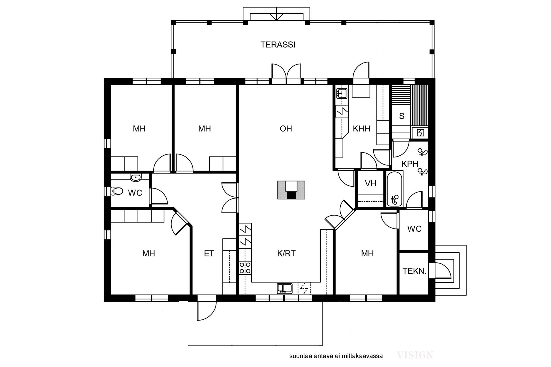 - Kerrosala rakennuspiirustusten mukaan 155 m2.