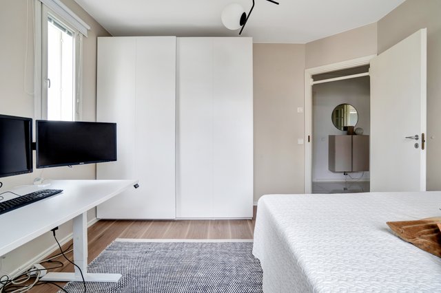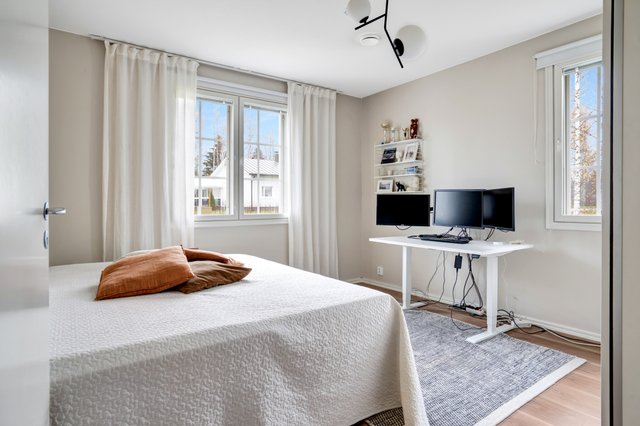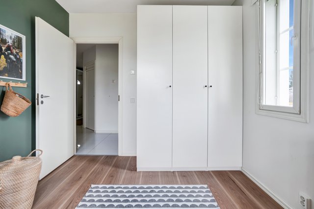 - Kolmessa makuuhuoneessa kiintokaapistot.