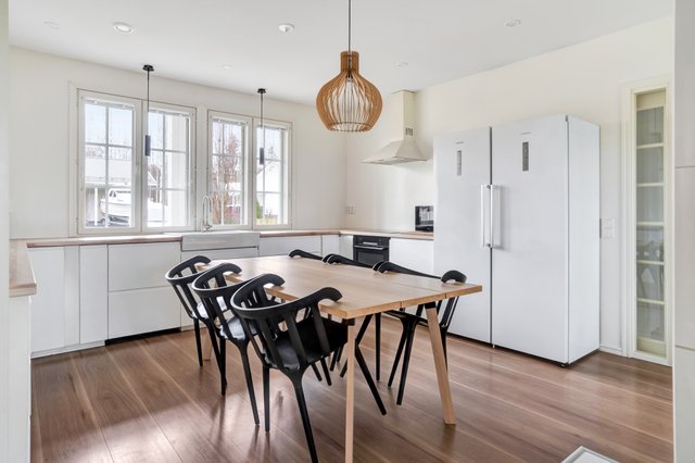 - Jääkaappi (uusittu 12/2020), erillinen pakastin (uusittu 12/2020), erillisuuni, liesi, astianpesukone (integroitu, uusittu 12/2020), ja liesituuletin (hormi)