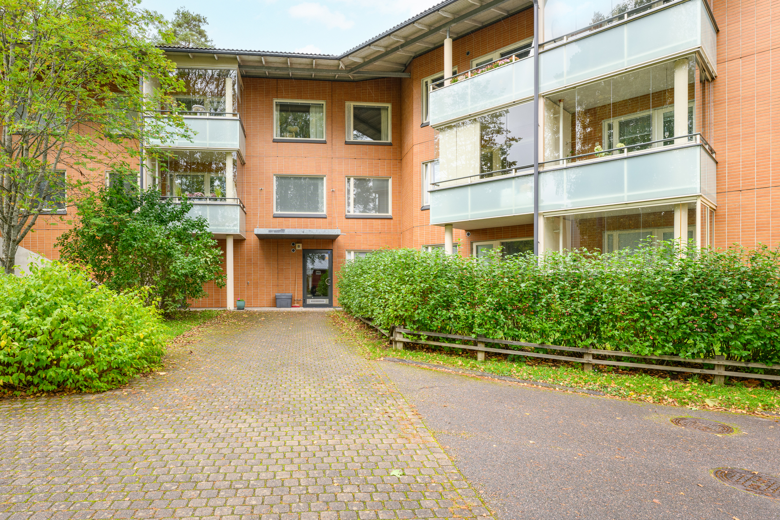 - Alimman kerroksen parveke, joten maisema taloyhtiön pihalle.