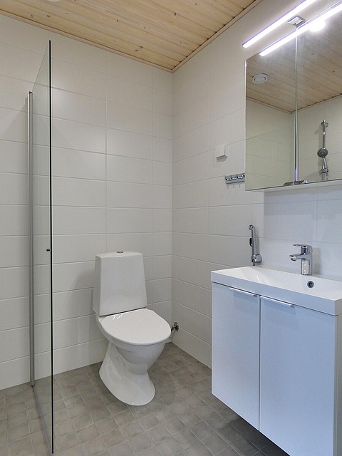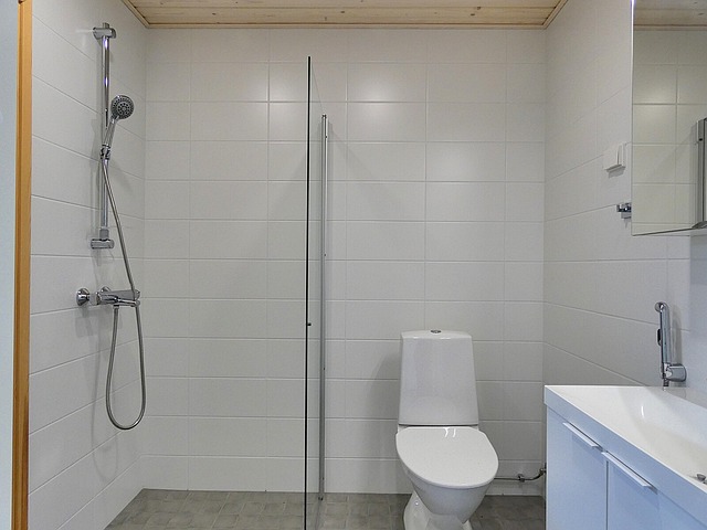 - Suihkuseinä, suihku, lattialämmitys, peilikaappi, ja wc-istuin