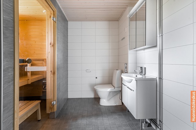 - Suihkuseinä, pesukoneliitäntä, wc-istuin, ja suihku