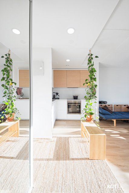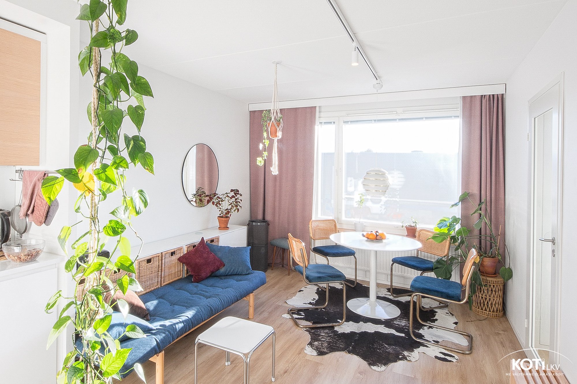 - Olohuone ja avokeittiö, helppo kalustaa monella eri tavalla