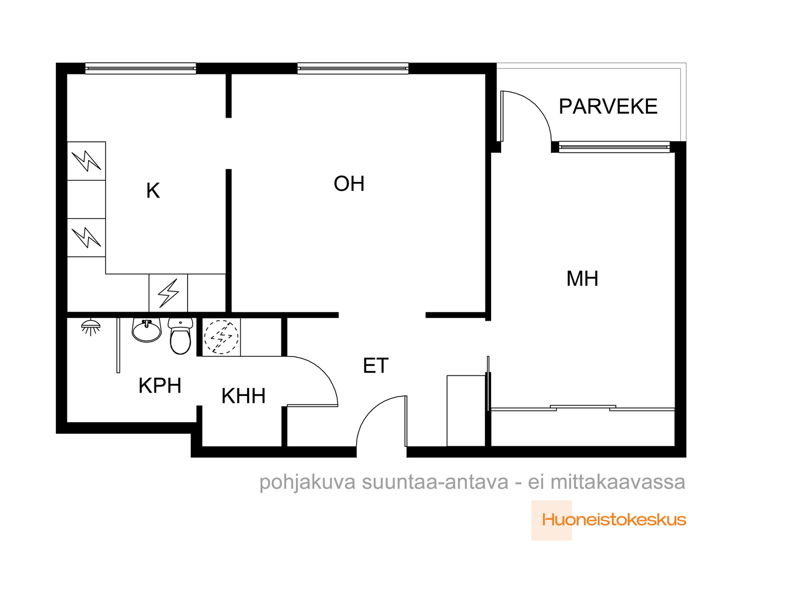 - Jääkaappipakastin, erillisuuni, mikroaaltouuni, liesituuletin, astianpesukone, ja kiinteät valaisimet, liesitaso