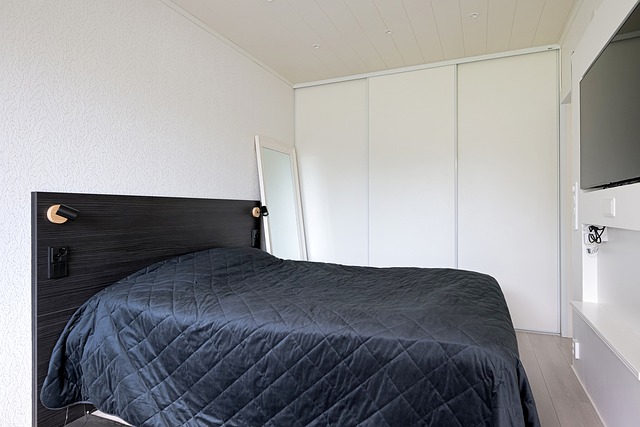 - katossa panelointi ja siihen on upotettu valoja, lisävalaistuksena led-valoja. Kiinteä sängynpääty valoilla ja koristeseinän (tv/kirjahylly seinä) seinäkotelointi, jossa paikka televisiolle.
