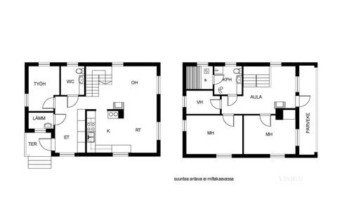 - 2 kph+s alakerrassa ph + wc-istuin ja yläkerrassa ph+s + wc-istuin