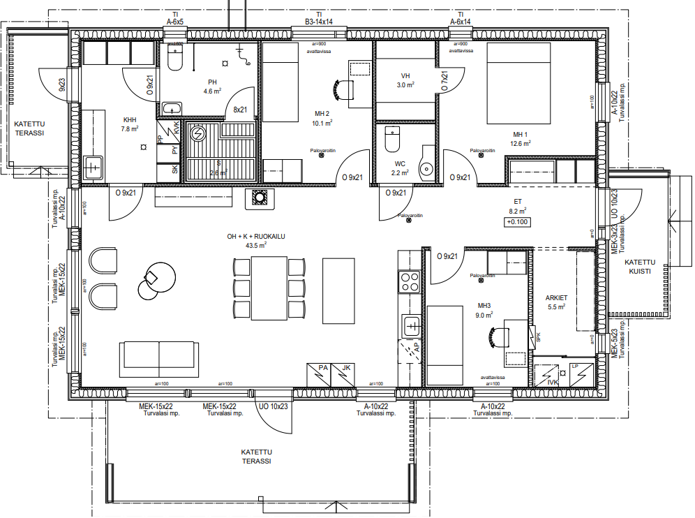 Nyt myynnissä pian valmistuva koti mukavalla sijainnilla. Kolme makuuhuonetta, joista suurimman yhteydessä oma vaatehuone. Valoisa olohuone ja saarekkeellinen avokeittiö isoilla ikkunapinnoilla. Tyylikäs Omega-keittiöiden kalustus tarjoaa hyvät puitteet ruuanlaittoon sekä runsaasti säilytystilaa. Kiinteät kaapistot makuuhuoneissa, eteisessä ja kodinhoitohuoneessa. Arkieteisessä ja vaatehuoneessa helposti muokattavat säilytysjärjestelmät. Iso katettu terassialue sekä katetut kuistit pääsisäänkäynnin ja kodinhoitohuoneen yhteydessä.