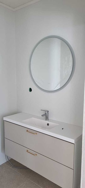 - Suihku, wc-istuin, peili, lattialämmitys, suihkuseinä, ja kiinteät valaisimet