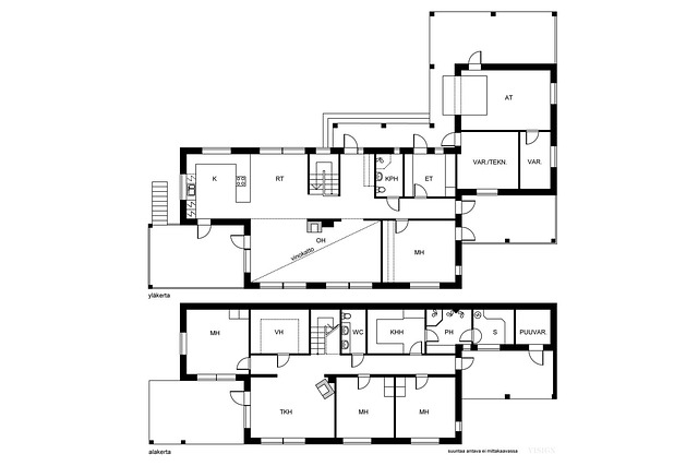 Oh, th, 4mh, rt, khh, 2 wv, kph,s, vh, 3 varastoa, at, 2 terassia