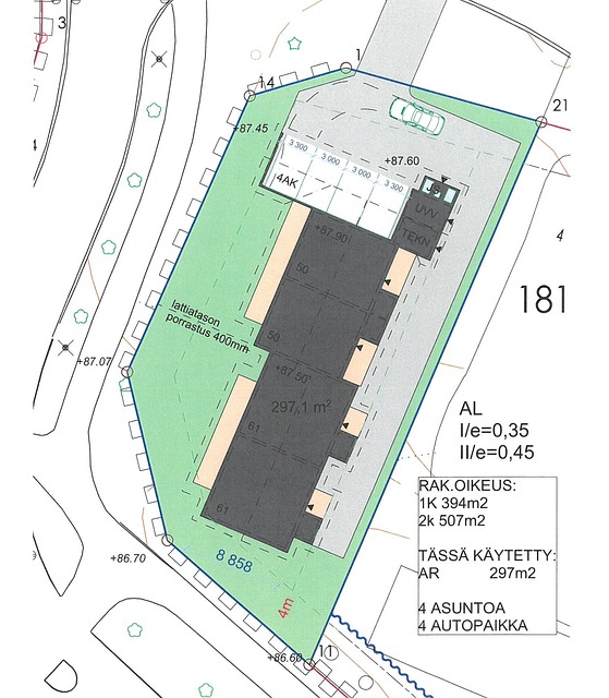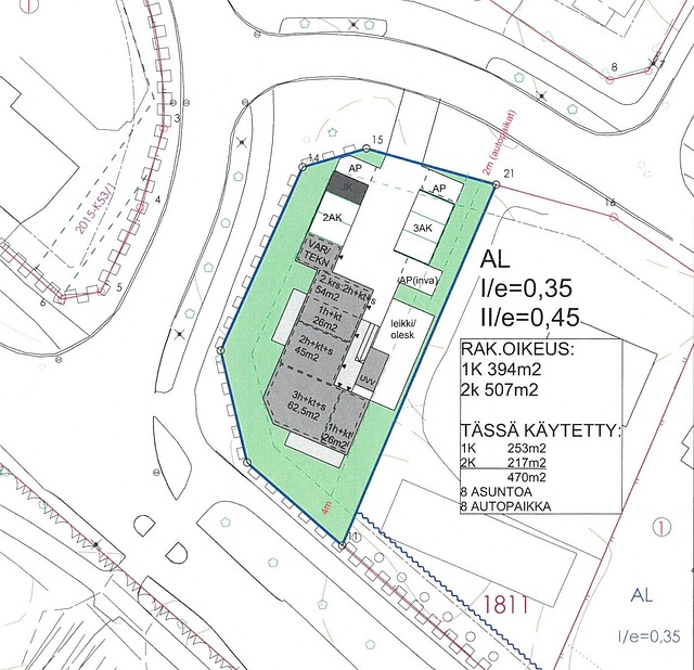Rakennusoikeus 2-kerrokseen 507 m² II/e=0,45