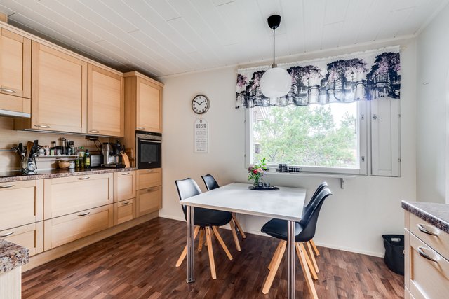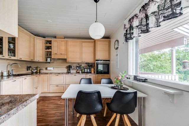Etsitkö perheellesi viihtyisää kotia rauhalliselta ja halutulta alueelta? Tämä Raision Kuloisissa sijaitseva omakotitalo tarjoaa erinomaiset puitteet mukavaan asumiseen. Talon tilava ja valoisa olohuone kutsuu rentoutumaan lämpöä varaavan takan ääreen, ja keittiö, joka on remontoitu vuonna 2011, tarjoaa modernit puitteet ruoanlaittoon.