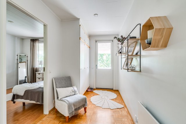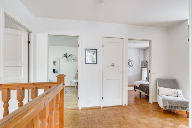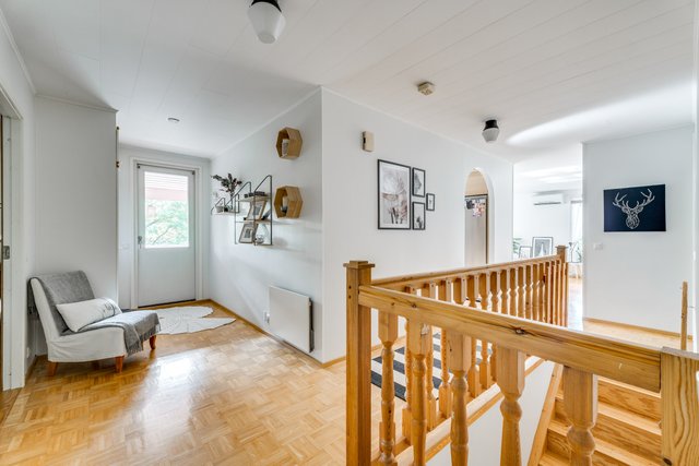 Kolme makuuhuonetta ja kaksi askartelu-/harrastetilaa alakerrassa tarjoavat runsaasti tilaa perheen tarpeisiin. Saunassa pääset nauttimaan rentouttavista löylyistä, ja kodinhoitohuoneen oma uloskäynti helpottaa arjen sujuvuutta.