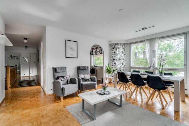Talon pihalla on mukava terassi, jossa voit nauttia kesäpäivistä. Läheltä löytyvät päiväkoti ja monipuoliset palvelut, kuten Länsikeskus ja Kauppakeskus Mylly, tekevät arjesta sujuvaa. Hyvät liikenneyhteydet takaavat helpon kulkemisen.
