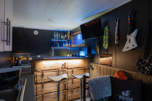 - Askarteluhuoneessa, pesuallas, toimii nykyisin baarina. Lämmin autotalli.