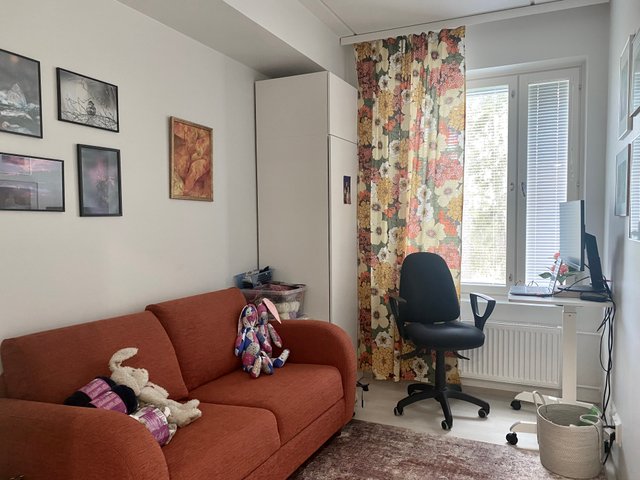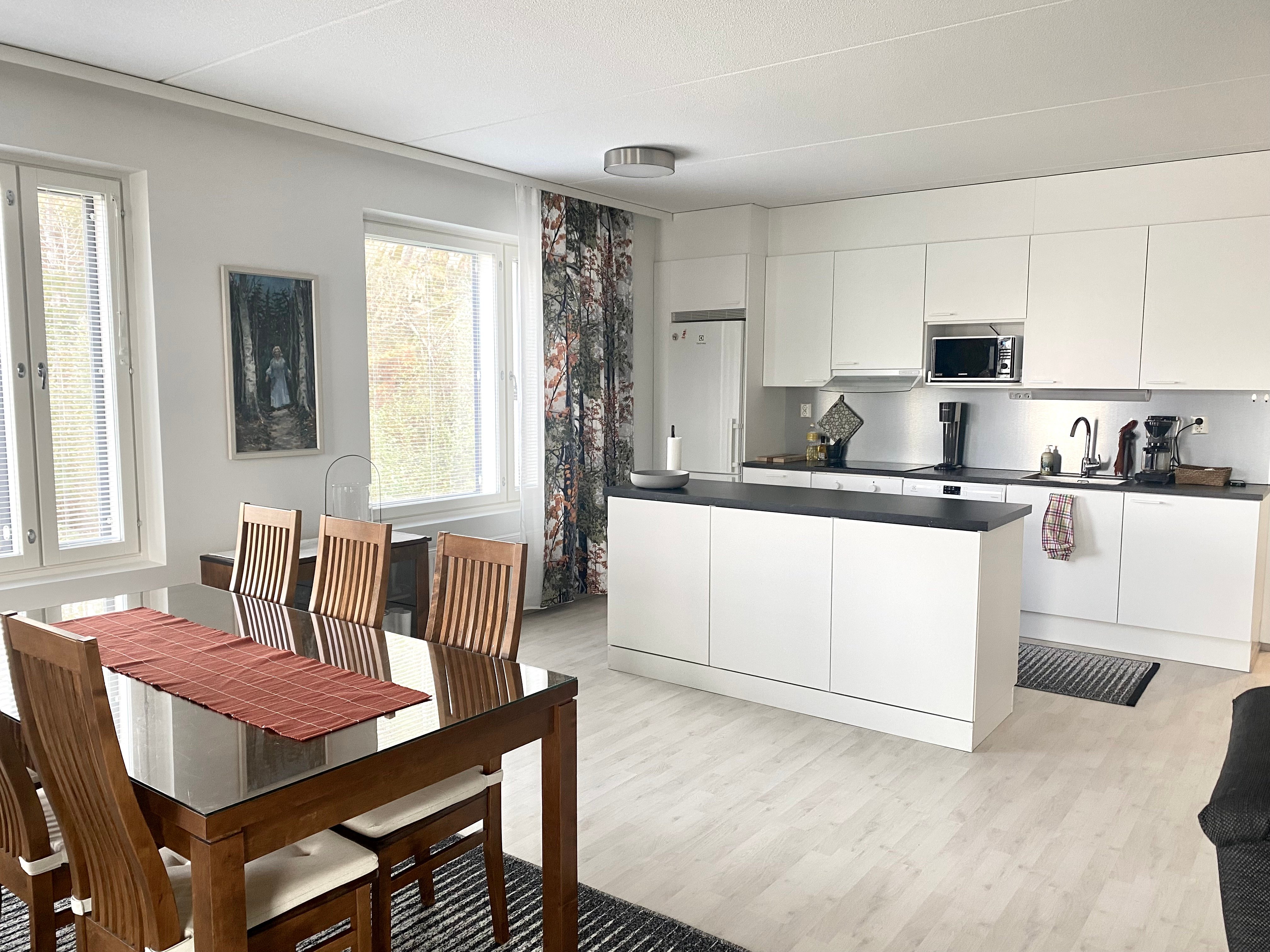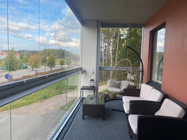 Asunnossa on kaksi makuuhuonetta, avara olohuone ja käytännöllinen keittiö, jossa on kaikki tarvittavat kodinkoneet. Kylpyhuoneen laatoitus ja sauna tarjoavat rentouttavat puitteet arjen kiireiden keskellä. Lasitettu parveke tuo lisätilaa ja mahdollisuuden nauttia ulkoilmasta ympäri vuoden.