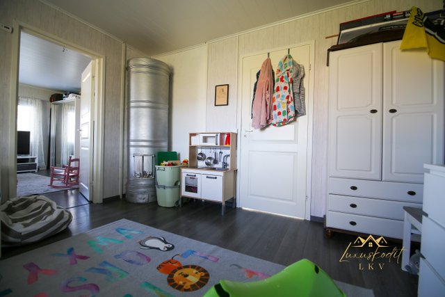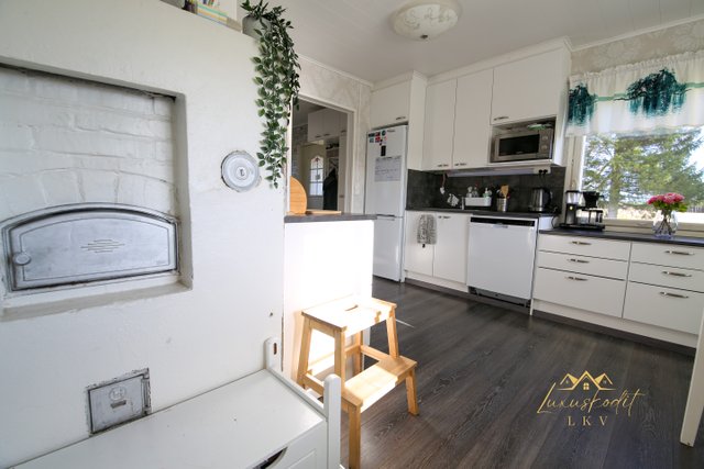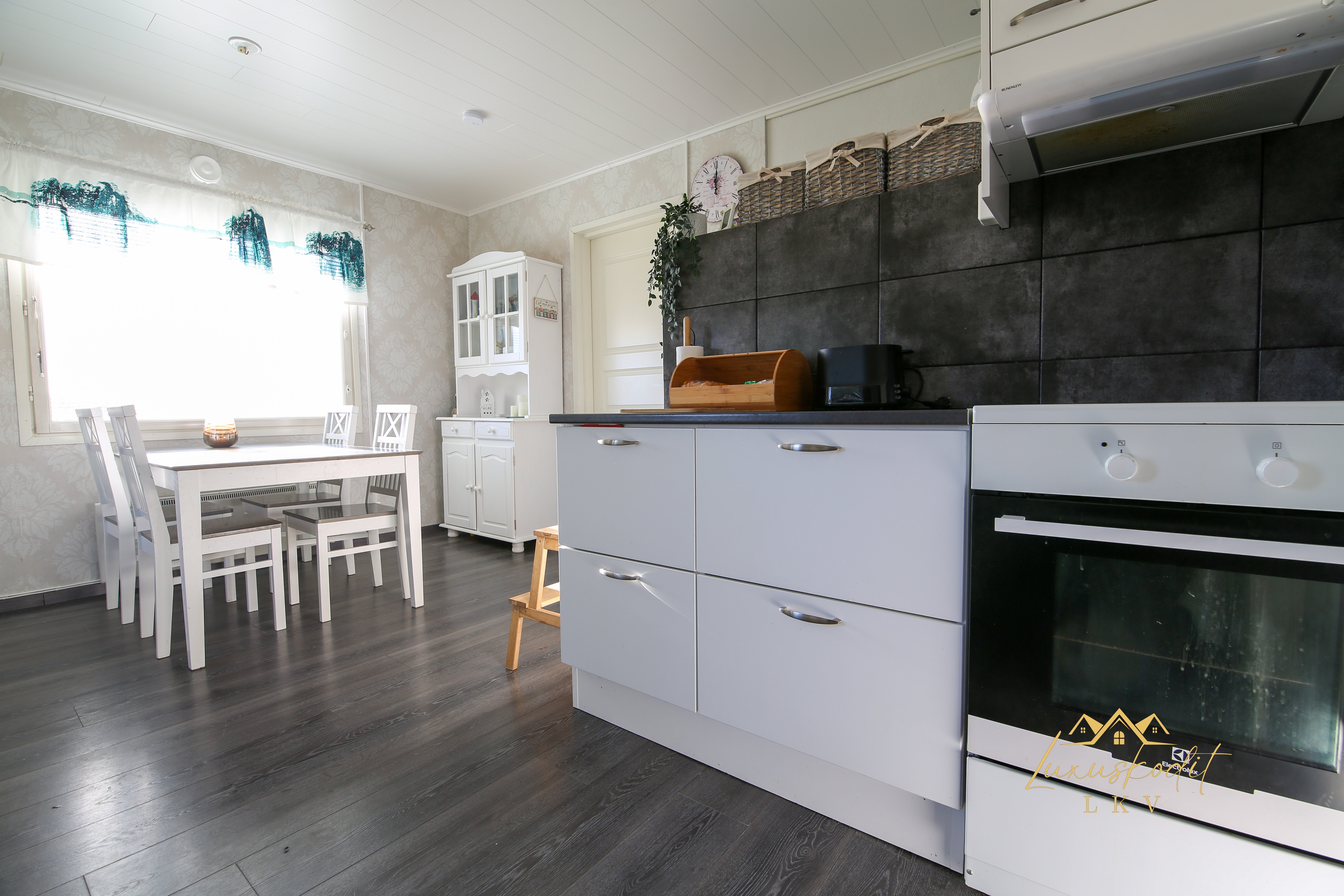 Sähkölämmitys ja puulämmitys takaavat mukavan asumislämpötilan ympäri vuoden.