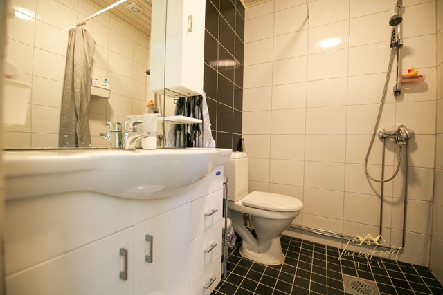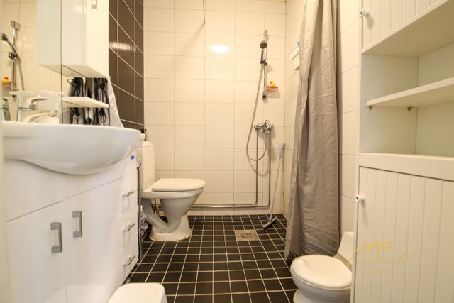 - WC-istuin, pesuallas, peili, pesukoneliitäntä, ja lattialämmitys