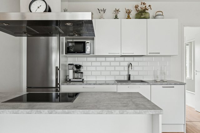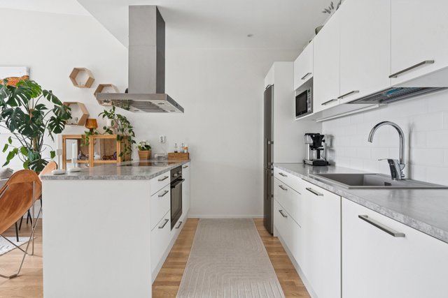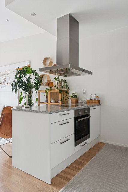 - Varustus: jääkaappi/pakastin, astianpesukone, kiinteät valaisimet, liesituuletin / hormi. Liesi: keraaminen. Työtasot: laminaatti. Lattia: parketti. Seinät: maalattu.