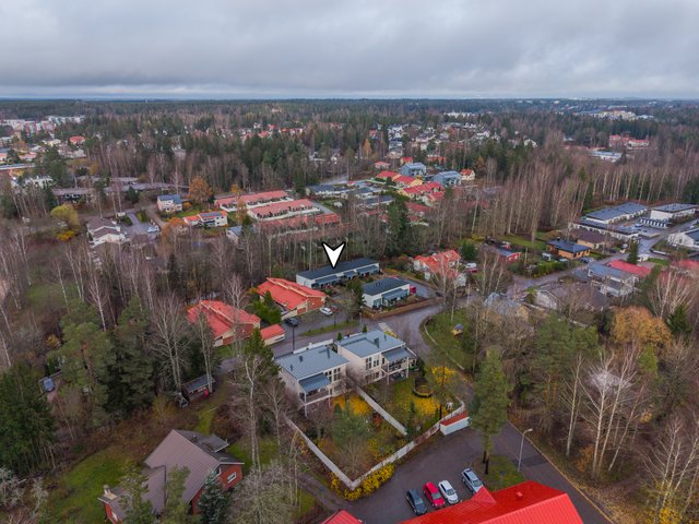 Asunto sijaitsee Espoon Tuomarilassa, rauhallisella ja viihtyisällä pientaloalueella, jossa arki sujuu vaivattomasti. Lähin päiväkoti, Luhtaniityn päiväkoti, on aivan kulman takana – vain noin 100 metrin päässä. Alueen palvelut, koulut ja harrastusmahdollisuudet löytyvät läheltä. Erinomaiset liikenneyhteydet tekevät liikkumisesta helppoa. Tuomarilan juna-asema, bussiyhteydet ja hyvät väylät takaavat sujuvan yhteyden sekä Espoon että Helsingin suuntaan.