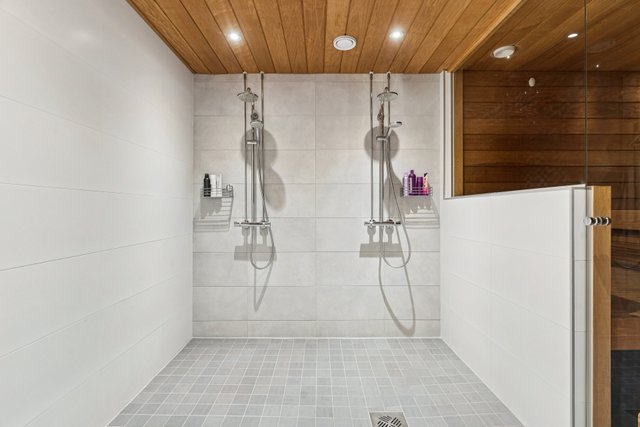 Alakerrasta löytyvät kodin muut tilat: Upea saunaosasto kahdella suihkulla tarjoaa arkeen ripauksen luksusta ja täydellisen paikan palautumiseen. Tilava kodinhoitohuone helpottaa arkea ja sen yhteydessä sijaitsee myös erillinen wc. Portaiden alta löytyy arvokasta lisäsäilytystilaa, joka auttaa pitämään kodin järjestyksessä. Lisäksi alakerrassa on kaksi huonetta – varsinainen makuuhuone sekä monikäyttöinen tila, joka soveltuu mainiosti esimerkiksi vieras- tai työhuoneeksi.