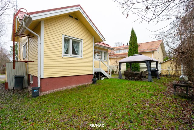 Oma, varsin suojaisa piha ja kaksi terassia tarjoavat mukavat puitteet ulkoilmasta nauttimiseen. Pihalle mahtuu useampi auto, autotallin toimiessa tällä hetkellä verstaana. Talon lämmitys hoituu kaukolämmöllä, ilmalämpöpumpulla sekä puulla, mikä tuo joustavuutta ja säästöjä energiankulutukseen.