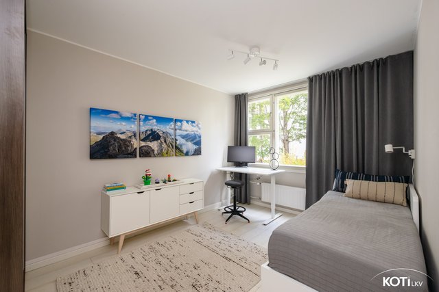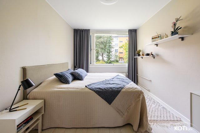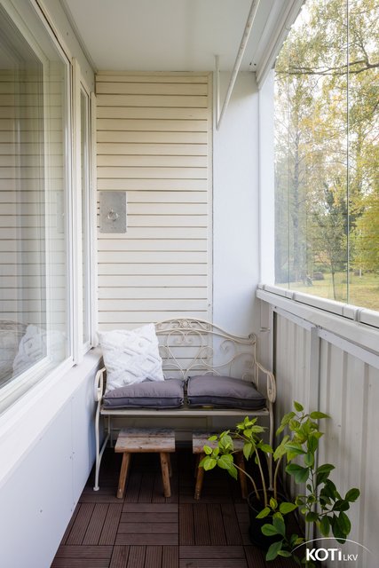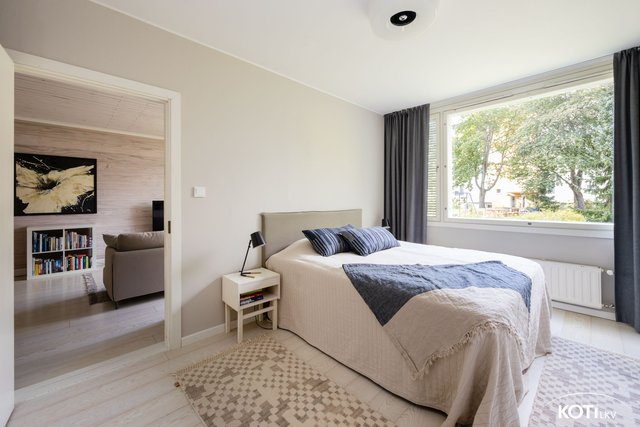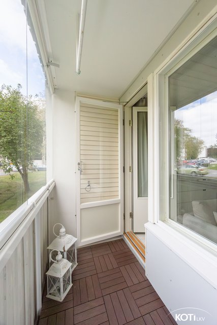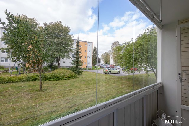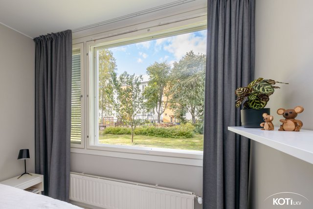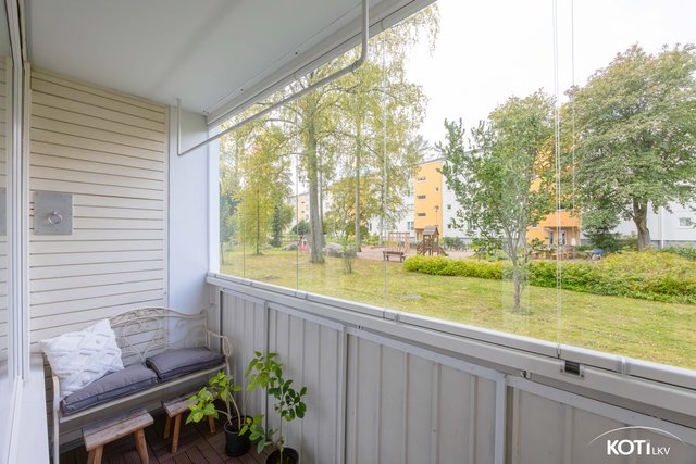 Olohuoneesta ja päämakuuhuoneesta avautuvat kauniit näkymät taloyhtiön vehreälle pihalle. Lasitettu parveke tarjoaa mukavaa lisätilaa.