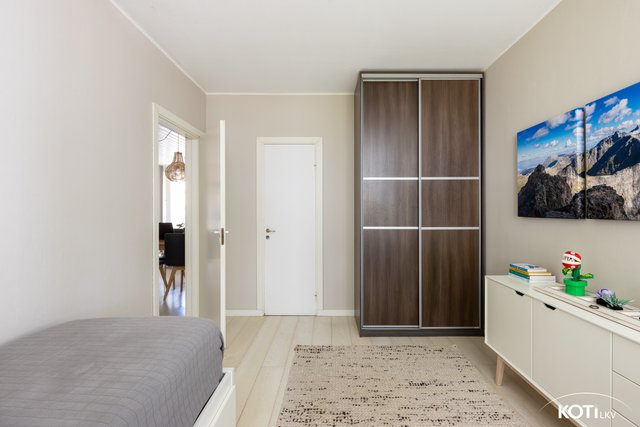 Asunnossa on erittäin hyvät säilytystilat, liukuovikaapistot eteisessä ja makuuhuoneissa, sekä tilava vaatehuone, lisäksi asunnon käytössä on kellarikomero.