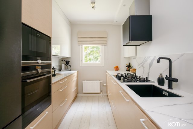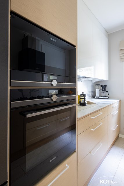 - Jääkaappipakastin (Siemens), erillisuuni (Siemens), mikroaaltouuni (Siemens), astianpesukone (Siemens, integroitu), ja liesituuletin (Faber, aktiivihiilisuodatin)