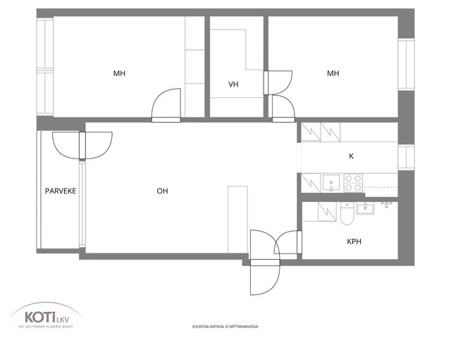 - Ei tarkistusmitattu. Pinta-alat saattavat tämän ikäisissä kohteissa (yhtiö rekisteröity ennen 01.01.1992) poiketa olennaisestikin asuinrakennusten nykyisten mittaustapojen ja standardien (SFS 5139) mukaan laskettavasta asuintilojen pinta-alasta. Pinta-ala voi siis olla edellä mainittua pienempi tai suurempi.