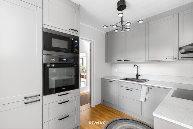 - 2022 uusittu Epoq-keittiö. Integroidut kodinkoneet: jää/pakastinkaappi (Electrolux), astianpesukone (Hisense), erillisuuni (Samsung), mikroaaltouuni (Samsung), induktioliesi (Electrolux). Liesituuletin hormiin (Savo, oma moottori), työtasot kvartsia. Lattia parkettia.