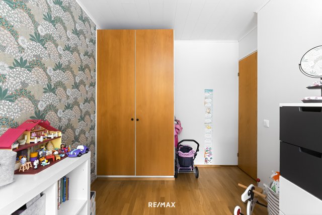 Asunnossa on kolme makuuhuonetta, joista yhdessä on vaatehuone ja kahdessa muussa makuuhuoneessa on kaapistot. Kodinhoitohuone on kätevästi ulko-oven vieressä.