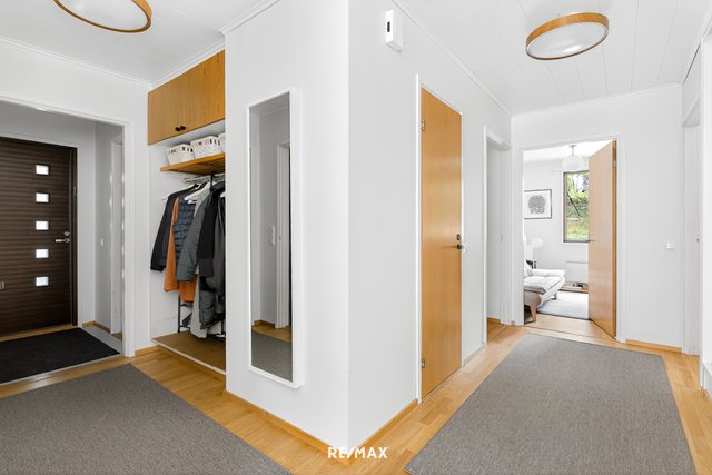- Sälekaihtimet takapihan puolen ikkunoissa, rullaverhot makuuhuoneiden ikkunoissa. Ilmalämpöpumppu, plofondi-valaisimet käytävällä ja vaatehuoneessa, kodinhoitohuoneen ja vaatehuoneen hyllyt.