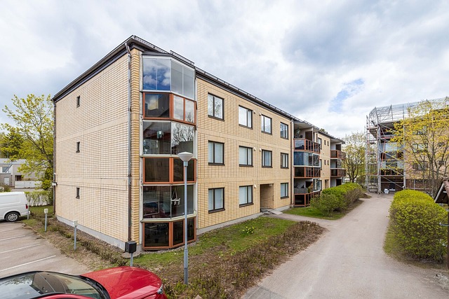 Hyvin hoidettu taloyhtiö sijaitsee omalla tontilla.