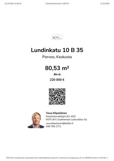 Tätä asuntoa myy Vesa Kilpeläinen, Kiinteistönvälittäjä LKV, KED