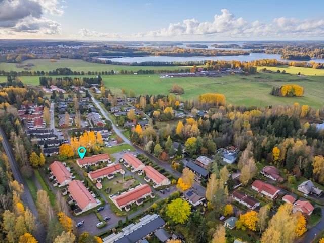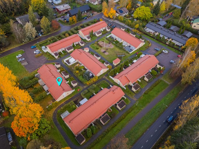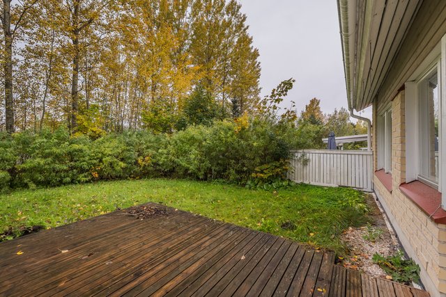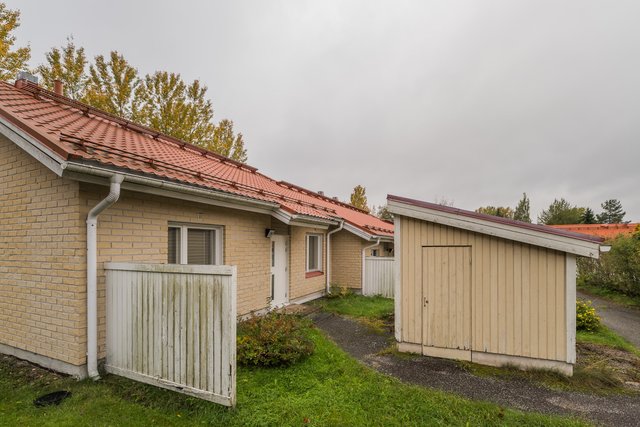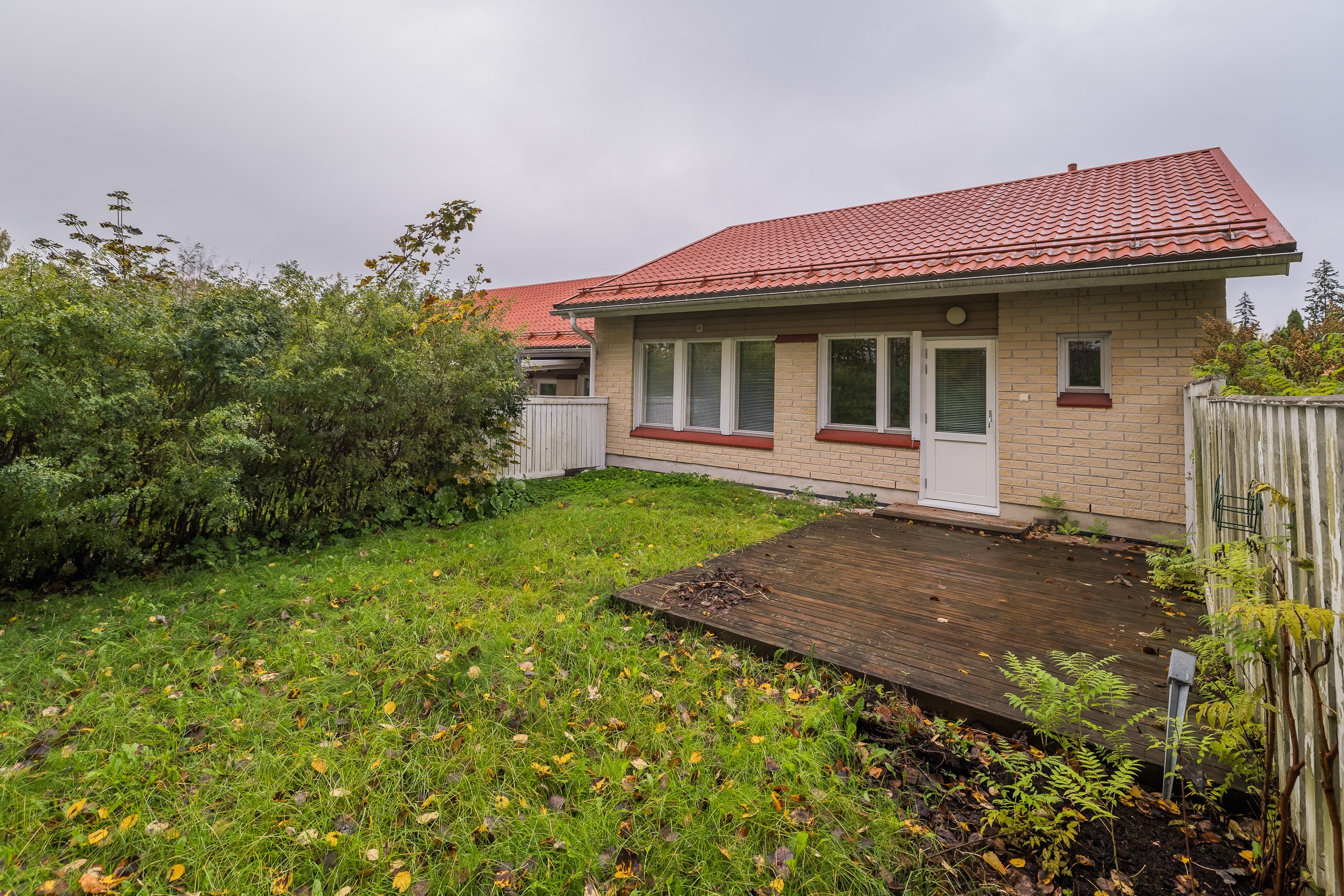 - Päätyhuoneisto, iso takapiha, jossa terassialue. Etupihalla ulkovarasto