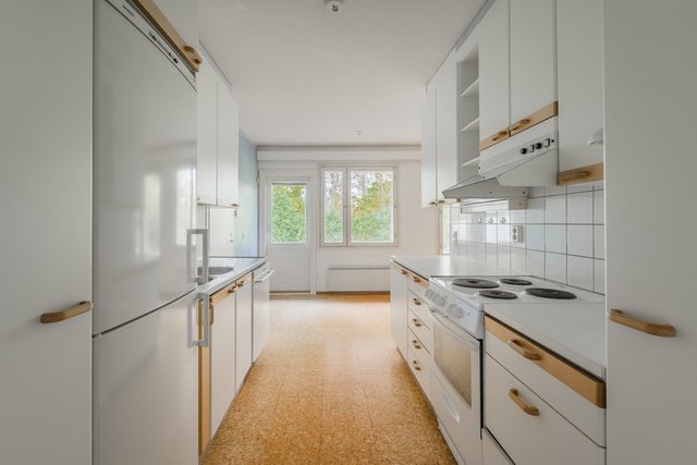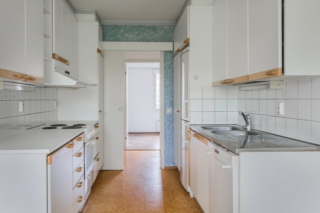 - Jääkaappipakastin, liesi (hormiin), astianpesukone, ja liesituuletin