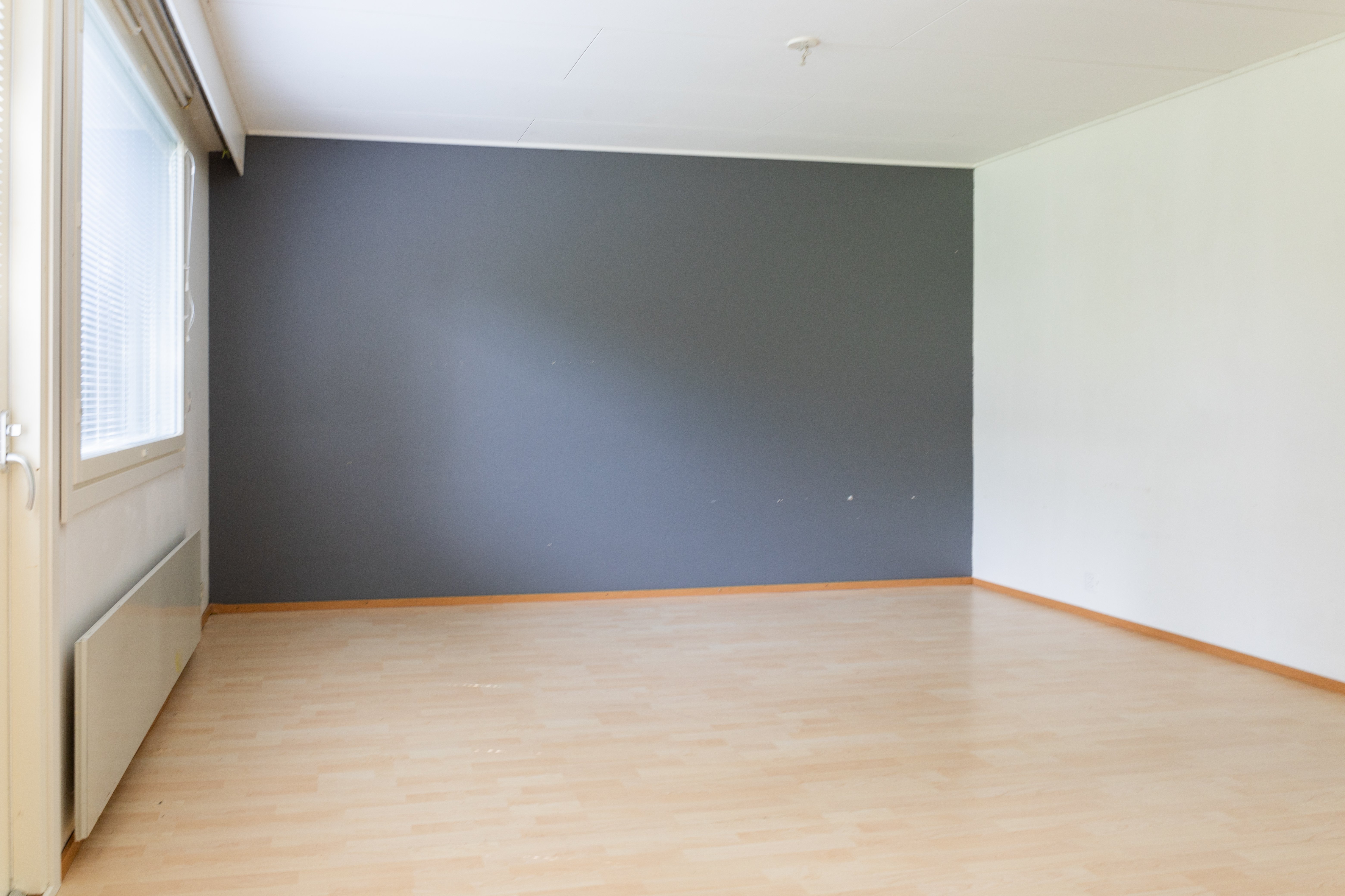 - Eteisen laminaatti on huonossa kunnossa ja se vaatii lattiapinnan uusimista.