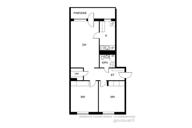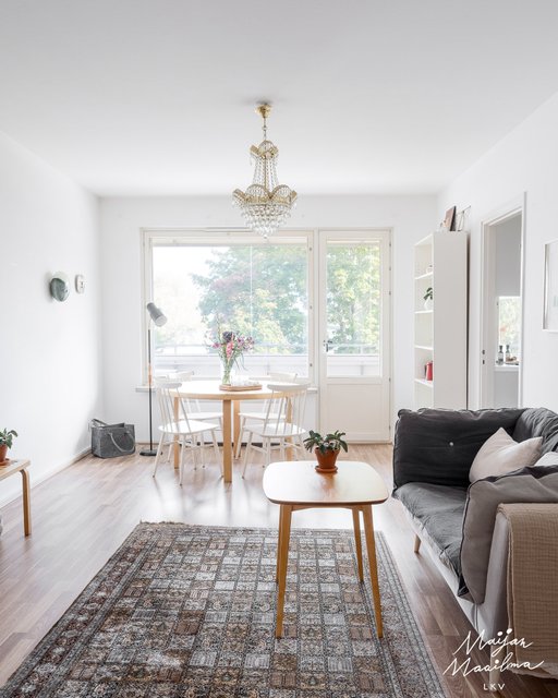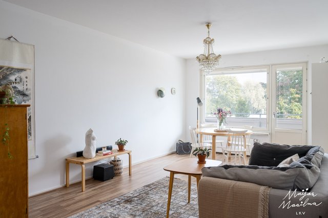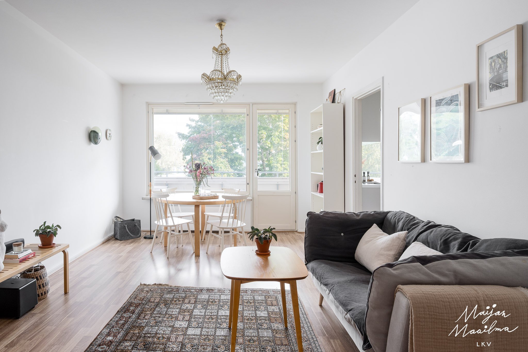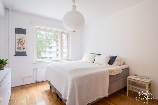 Tarjolla tunnelmallinen läpitalon kolmio Lauttasaaressa. Asunto muodostuu olohuoneesta, keittiöstä, kahdesta makuuhuoneesta, kylpyhuone/wc:stä, vaatehuoneesta ja lasitetusta parvekkeesta. Huoneiston keittiössä on valkoiset kaapistot. Lasku- ja kaappitilaa on kivasti. Olohuoneesta on käynti lasitetulle itään suuntaavalle parvekkeelle, merinäköaloistakin pääsee nauttimaan. Makuuhuoneiden ikkunat aukeavat sisäpihalle. Huoneistossa on kylpyhuone/wc, jonne mahtuu myös pyykinpesukone. Vaatehuone ja runsaslukuiset kaapistot helpottavat arjen järjestyksenpitoa. Huoneistossa on loistava ja tehokas pohja!