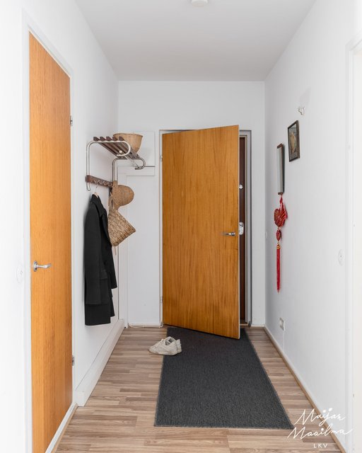 - Eteinen: Laminaattilattia, maalatut seinät. Vaatehuone: Hyllytilaa ja tilaa ripustettaville vaatteille.