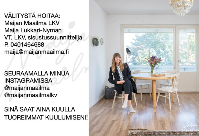 Tätä asuntoa myy Maija Lukkari-Nyman, Yrittäjä, varatuomari, LKV, sisustussuunnittelija