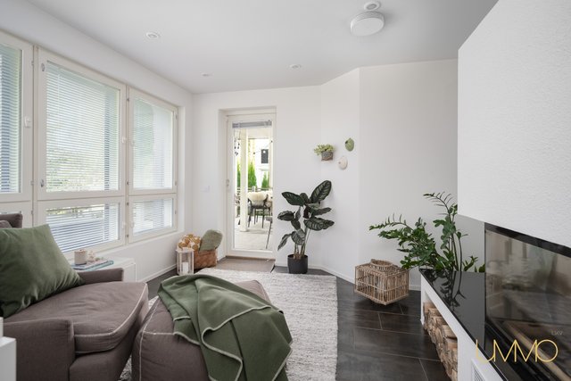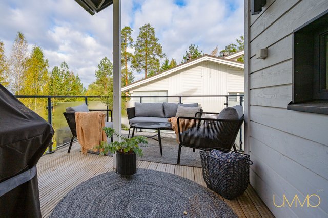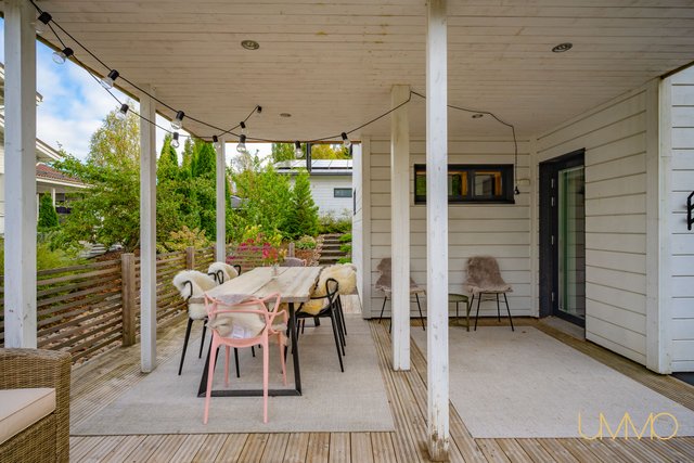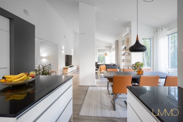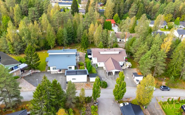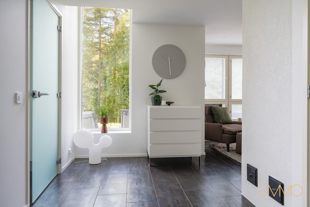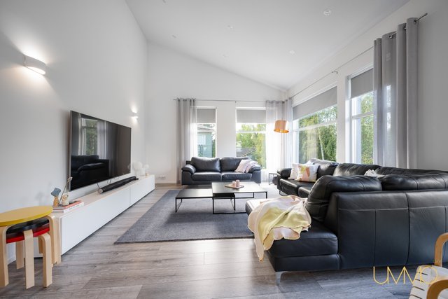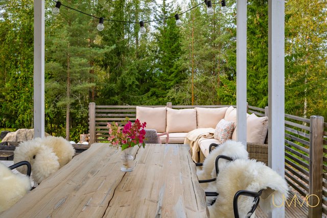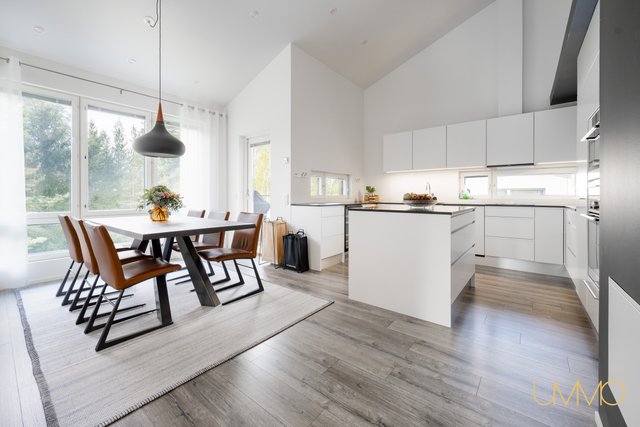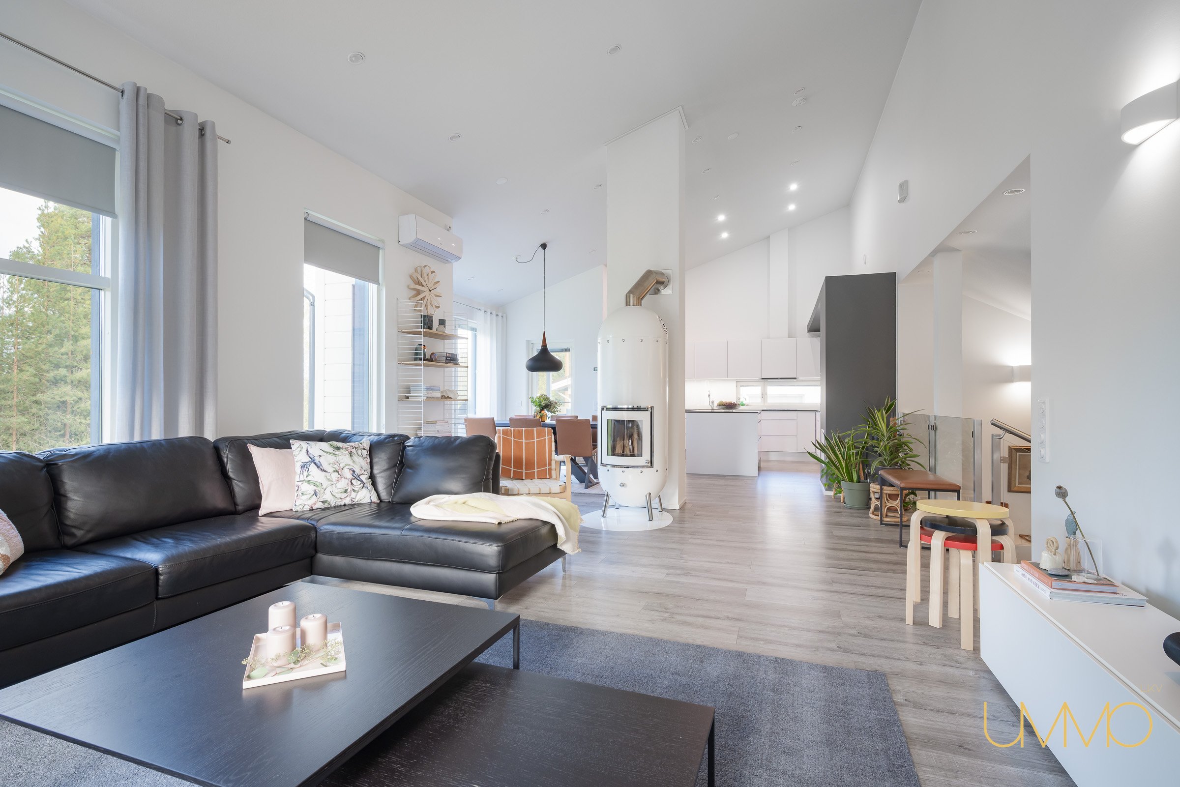 - Korkea viistokatto. Ilmalämpöpumppu. Varaava takka.