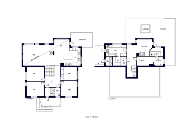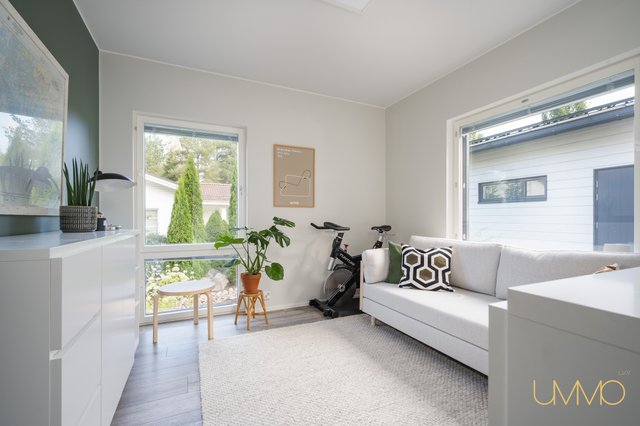 - Pohjakerroksessa erittäin isot tilat vaikka kuntosalikäyttöön (korkeus 210 cm).