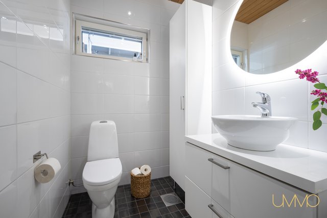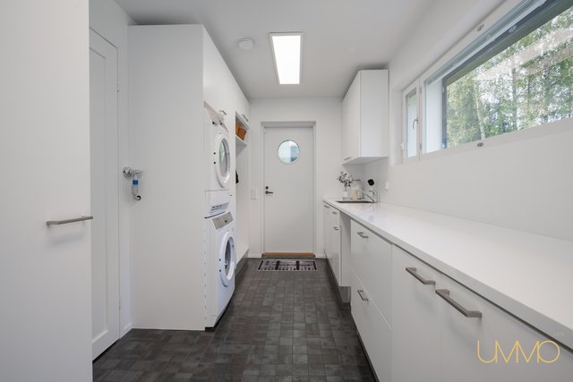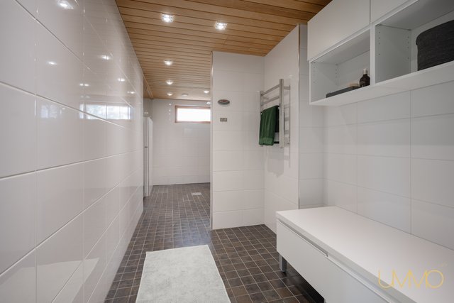 - Lattialämmitys, pesuallas, lattiakaivo, kurapiste, pesukoneliitäntä, ja tila pesutornille