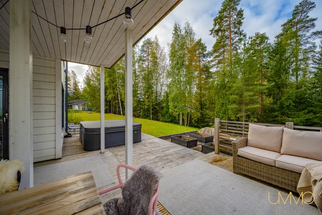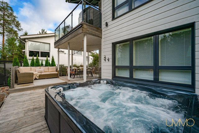 Tässä upeassa kodissa on 186 m2 asuinpinta-alaa ja lisäksi löytyy runsaasti myös muita tiloja, kuten kellaritila 78m2 (korkeus 210 cm) ja tekninen tila. Talon sydämenä toimii avara ja valoisa olohuone, jossa korkea viistokatto, ilmalämpöpumppu sekä varaava takka. Keittiö varusteltu modernisti ja täältä on käynti myös parvekkeelle, mikä tekee siitä ihanteellisen paikan nauttia aamukahvista. Keskikerroksessa sijaitsevat neljä mukavan kokoista makuuhuonetta sekä erillinen wc suihkuvarauksella. Alakerrassa pesutilat saunaosastoineen, erillinen wc, tunnelmallinen takkahuone sekä kodinhoitohuone, josta suora kulku ulos. Kodinhoitohuoneen yhteydessä vaatehuone. Takapihalla on tilava terassi, josta löytyy myös Novitekin laadukas ulkoporeallas. Lisäksi tontilta löytyy lämmin talousrakennus sähköisellä nosto-ovella, lattiakaivolla ja vesipisteellä.