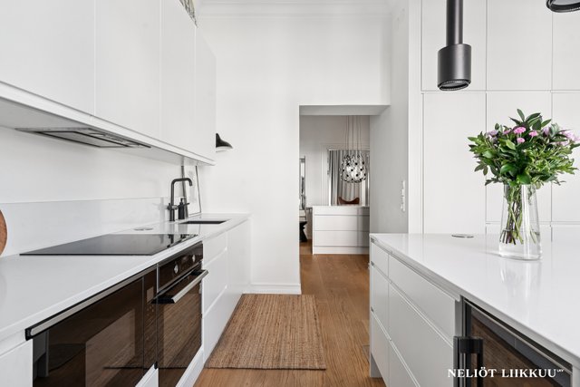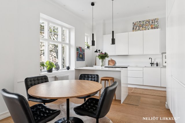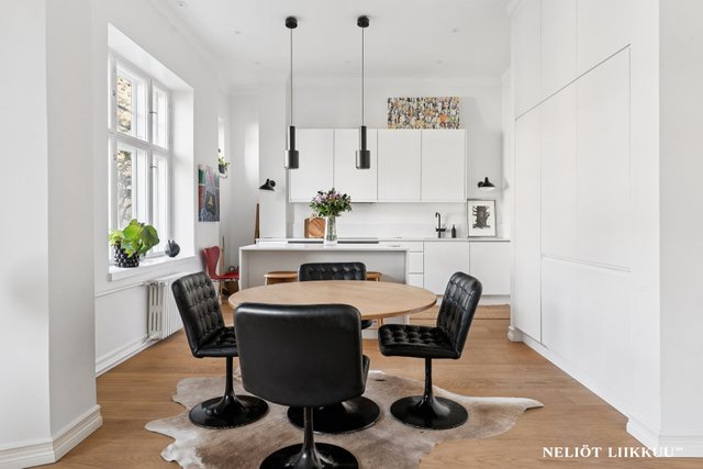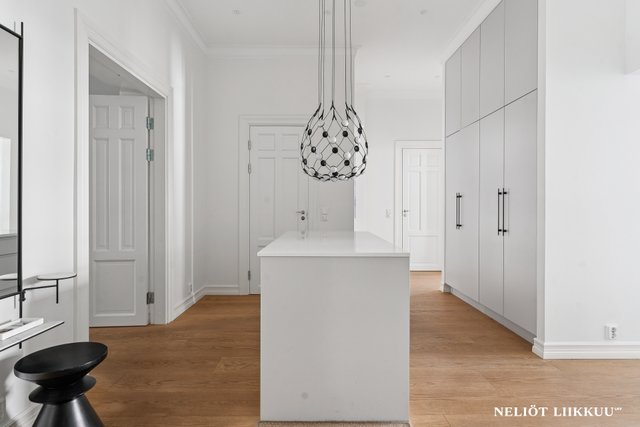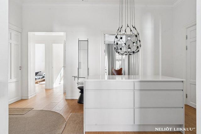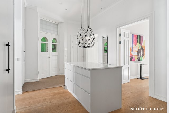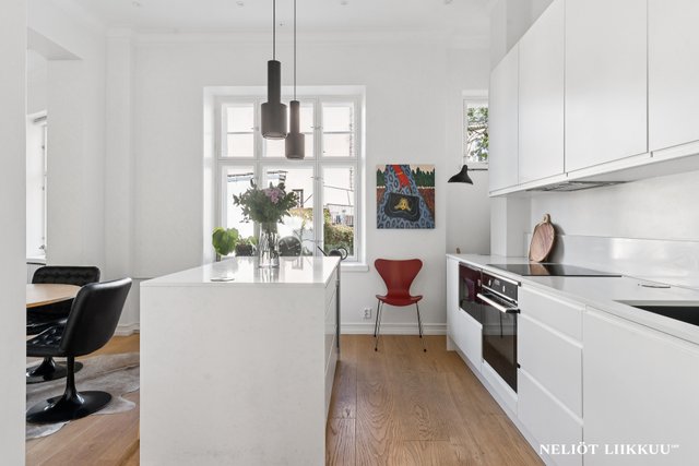 Tämä upea, vuonna 1903 valmistunut taloyhtiö sijaitsee arvostetulla Katajanokan alueella Helsingissä. Asunnon tilava 129,7 m² koko tarjoaa runsaasti tilaa ja valoa, ja sen ilmavat huoneet korkeilla katoilla luovat ainutlaatuisen tunnelman. Asunto on erinomaisessa kunnossa ja se on kokonaan remontoitu v. 2021. Asuntoon on uusittu kaikki pinnat, sähkötyöt, kosteat tilat, keittiö ja kaapistot, mikä tekee siitä valmiin heti asuttavaksi.