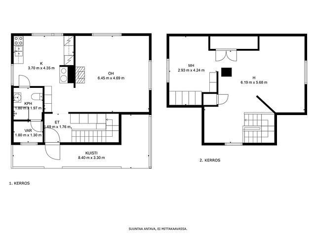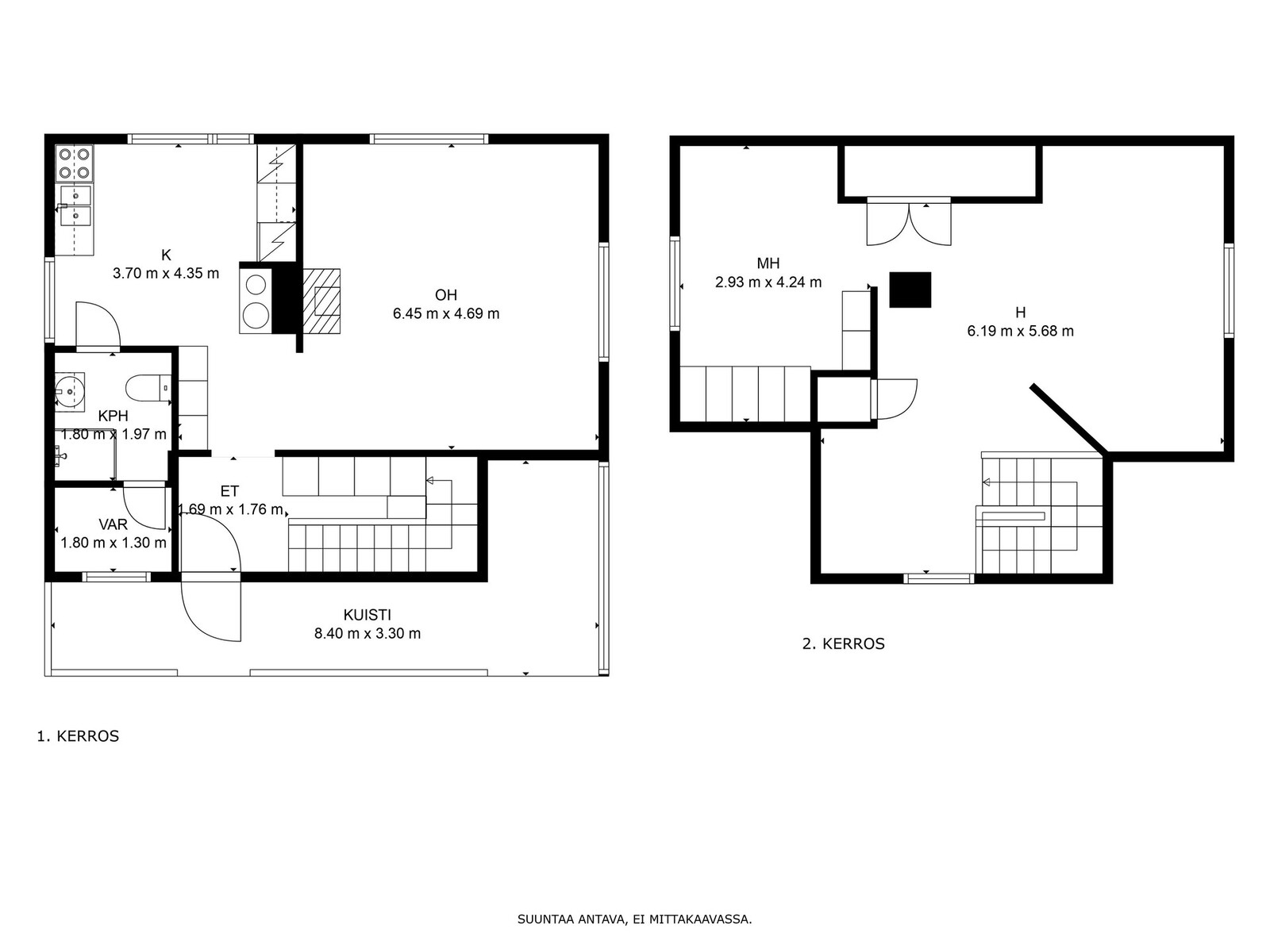 Olohuone, keittiö, WC, eteinen ja yläkerrassa makuutilat