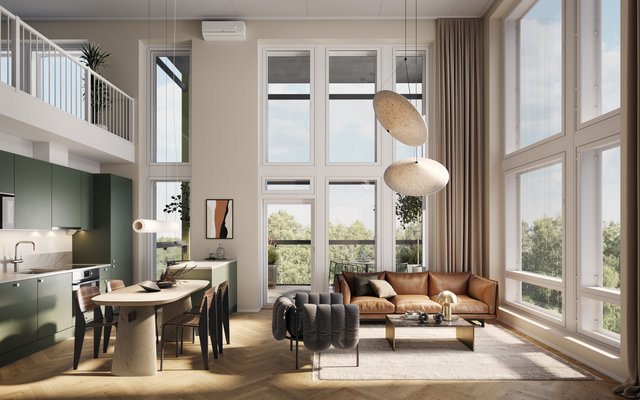 - Ilmoitettu rahoitusvastikearvio sisältää lyhennyksen ja koron osuuden, ensimmäinen lyhennys 15.3.2028. Korko on laskettu todellisella vuosikorolla 12kk Euribor + 0,80% marginaalilla (tilanne 15.10.2025 yht. 2,963 %). Laina-aika on 28 vuotta + rakennusaika. Rakennusaika ja ensimmäinen asumisvuosi ovat lyhennysvapaita. Lainan lyhennystapa on annuiteetti. Tontin vuokra sisältyy hoitovastikkeeseen.