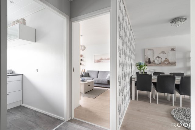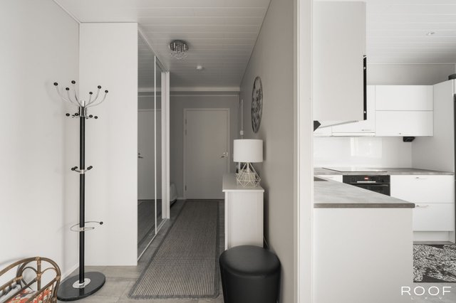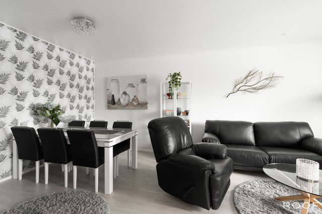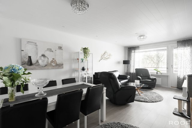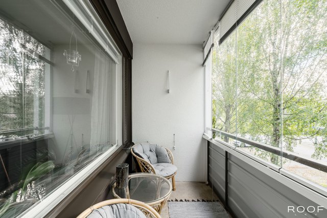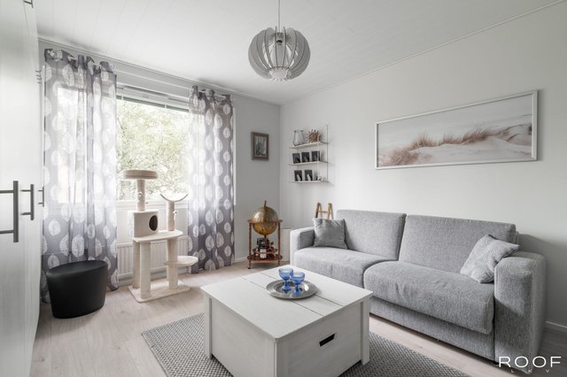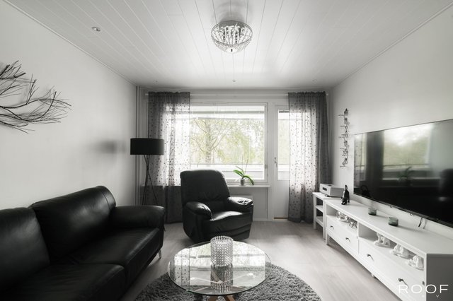 Siisti ja tilava koti, mikä on remontoitu viime vuonna laajalti. Kaikki katot on paneloitu. Paneleihin on upotettu valoja. Kaikki seinät on maalattu tai tapetoitu, kylpyhuoneen seinät kaakeloitu. Lattioille on asennettu laminaatti ja kylpyhuoneeseen laatta ja sen alle asennettu lattialämmitys. Toisessa makuuhuoneessa on isohko vaatehuone ja toisessa koko seinän pituudelta kaapistoa. Asunnon ulko-oven sisäovi on äänieristetty ovi, ja tältä osin pitää rappukäytävän äänet pois asunnosta. Parveke on siisti ja lasitettu. Tämä on todellakin muuttovalmis koti.