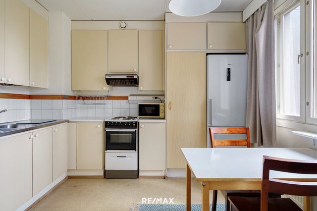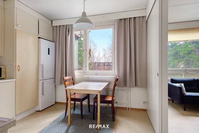 Kolmannen kerroksen tilava kaksio vuonna 1983 valmistuneesta yhtiöstä. Tilavasta keittiöstä löytyy paljon kaappitilaa, sekä tilaa ruokapöydälle. Makuuhuoneessa on viilentävä ilmalämpöpumppu, joka tuo mukavuutta kesähelteillä. Lasitetulta parvekkeelta aukeaa vehreät näkymät rauhalliselle sisäpihalle. Asunto on osa hyvin hoidettua taloyhtiötä, jossa on muun muassa sauna ja pesutupa sekä tuottavia liiketiloja.